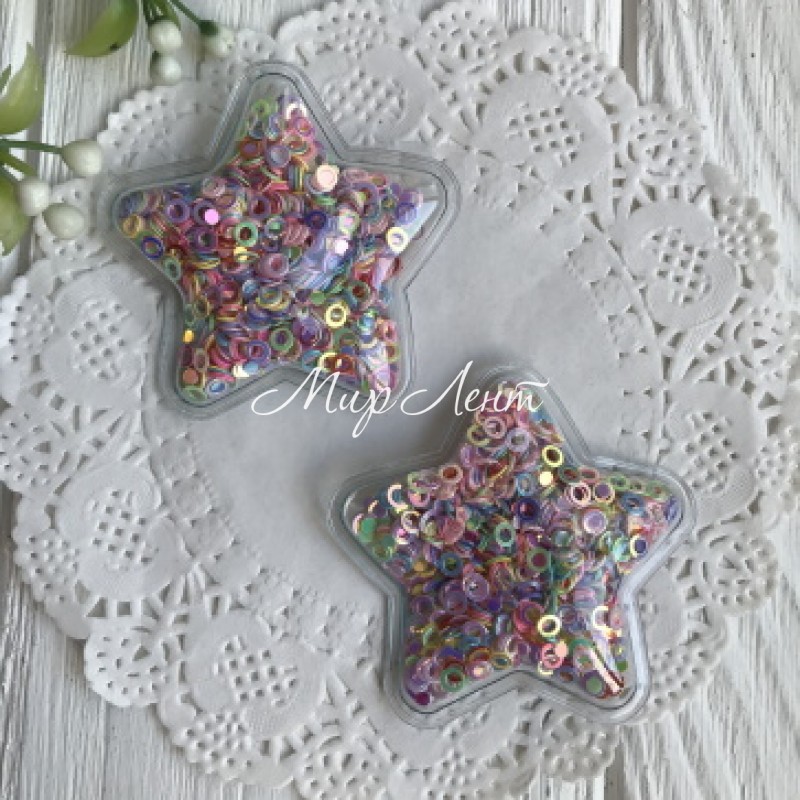 Силиконовая звездочка с наполнителем, 5 см, разноцветные колечка, упаковка 20 шт.