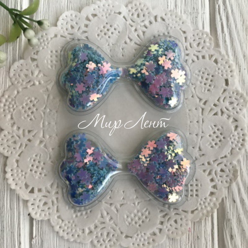 Силиконовый бантик з наполнителем, 6,3х3,6 см, бирюзовые цветы, упаковка 20 шт.