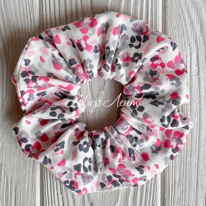 Скранч турецкий трикотаж, 12 см, белый с малиново-серым леопардом, шт.