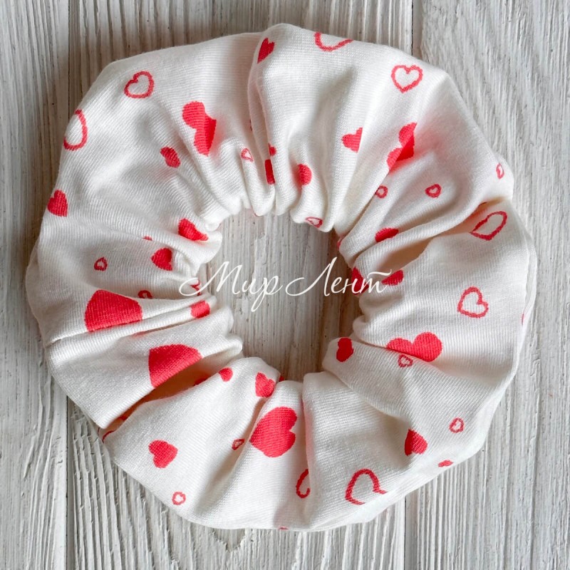 Скранч турецкий трикотаж, 12 см, белый с малиновыми сердечками, шт.
