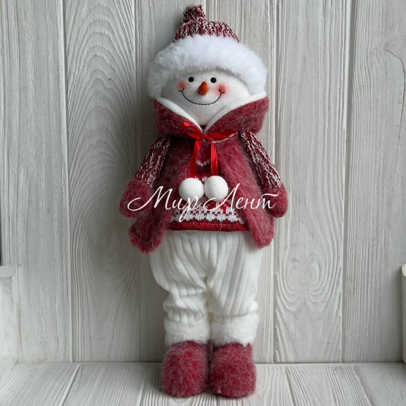 Снеговик новогодний на ножках (L01147), 22х18х46 см, бело-красный, шт.