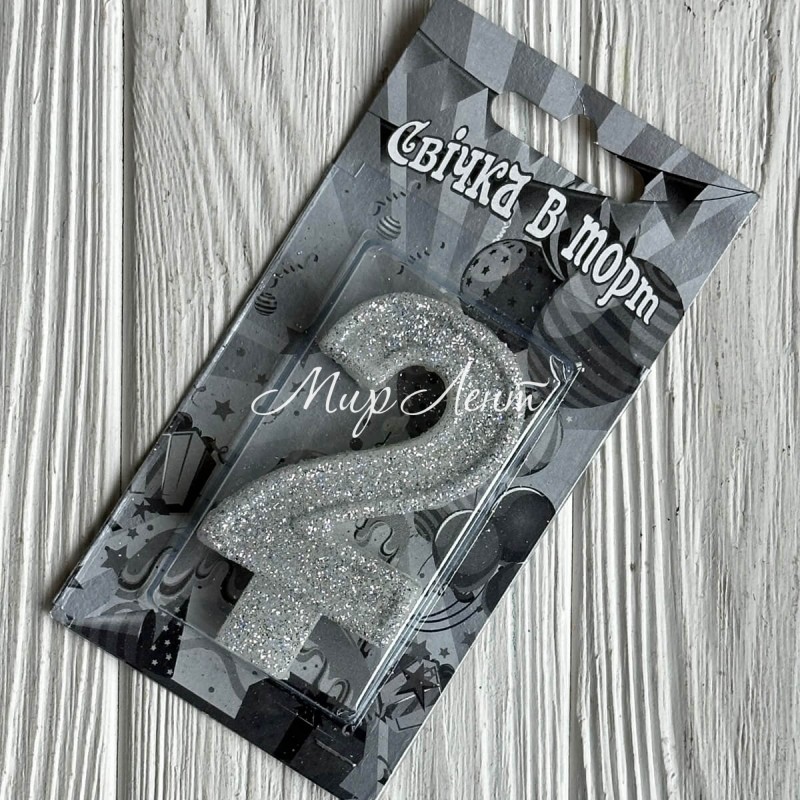 Свеча для торта (серебро), 7,8х3,8 см, цифра 2, шт.