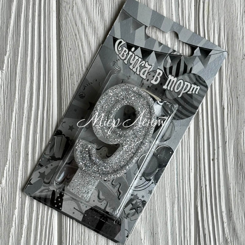 Свеча для торта (серебро), 7,8х3,8 см, цифра 9, шт.
