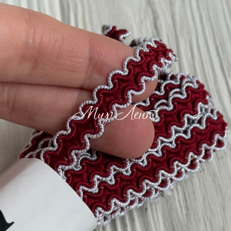 Тесьма цветная с кантом, 1 см, бордовая, рулон 9 м
