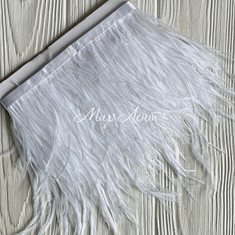 Тесьма из страусиных перьев, 10-15 см, белая, рулон 2 м