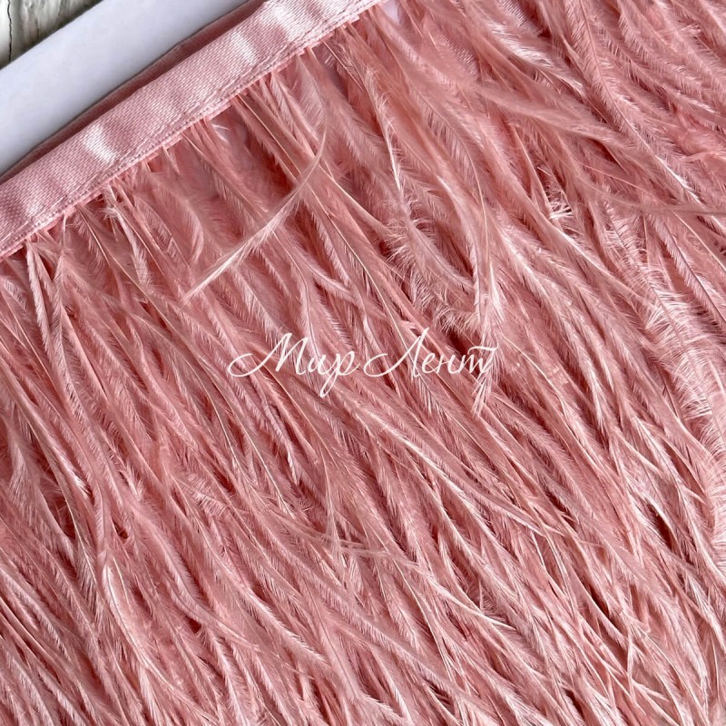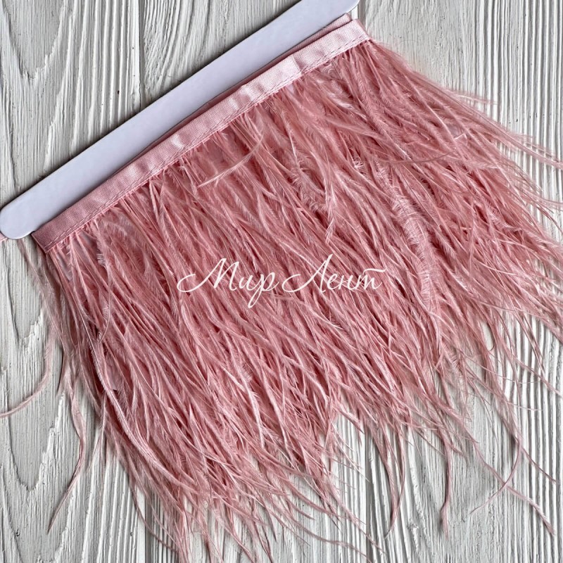 Тесьма из страусиных перьев, 10-15 см, пудровая, рулон 2 м
