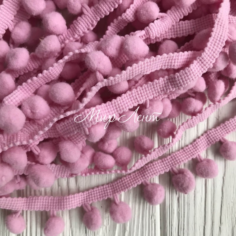 Тесьма помпончики, 1,3 см, розово-пудровый, моток 20 ярдов (18 м)