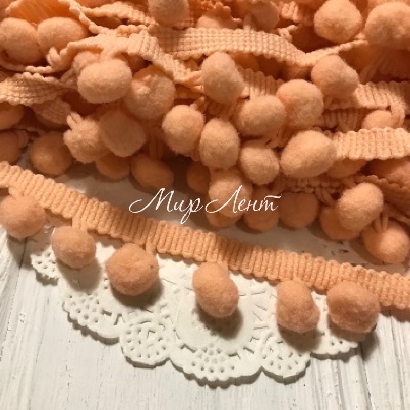 Тесьма помпончики, 1,1 см, темно-персиковый, моток 20 ярдов (18,5 м)