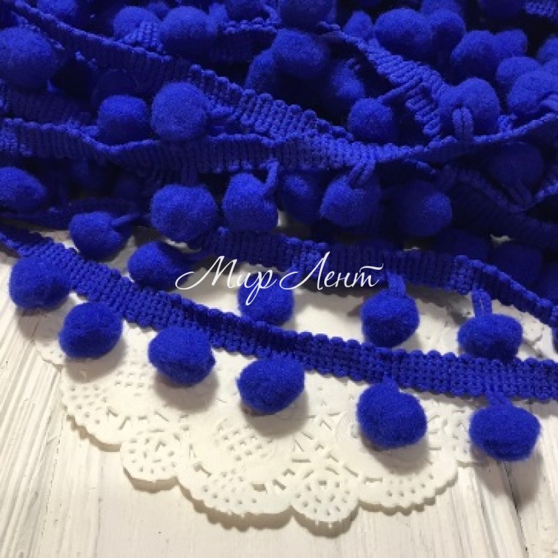 Тесьма помпончики, 1,1 см, темно-синий, моток 20 ярдов (18,5 м)