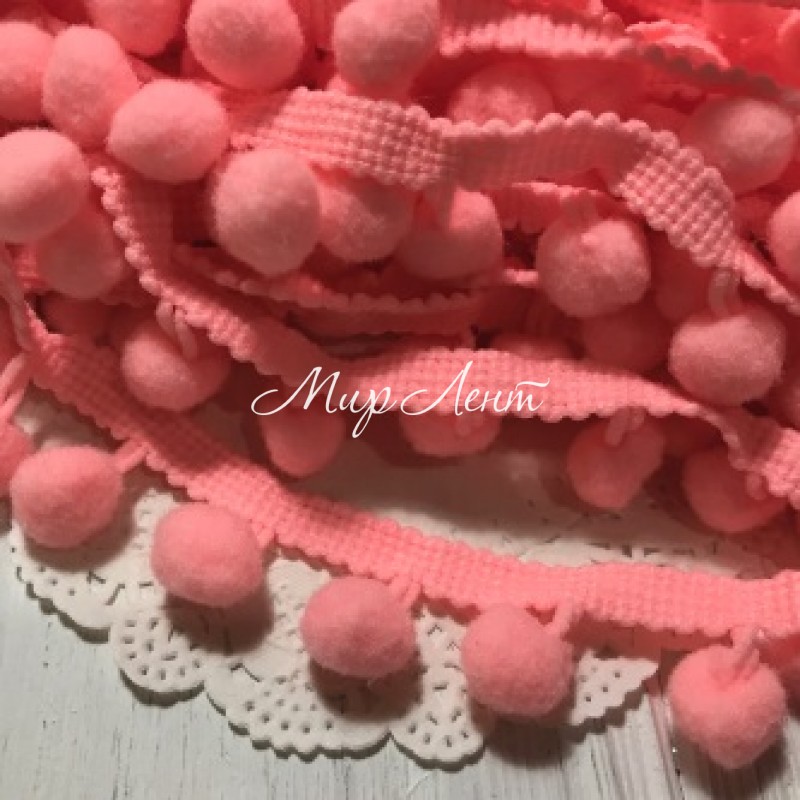 Тесьма помпончики, 1,1 см, ярко-персиковый, моток 20 ярдов (18,5 м)