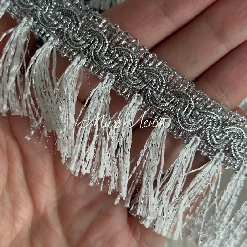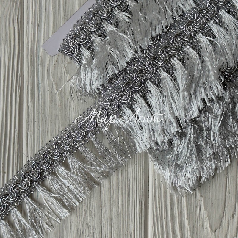 Тесьма с бахромой (D30056), 5 см, серебро, рулон 13 м