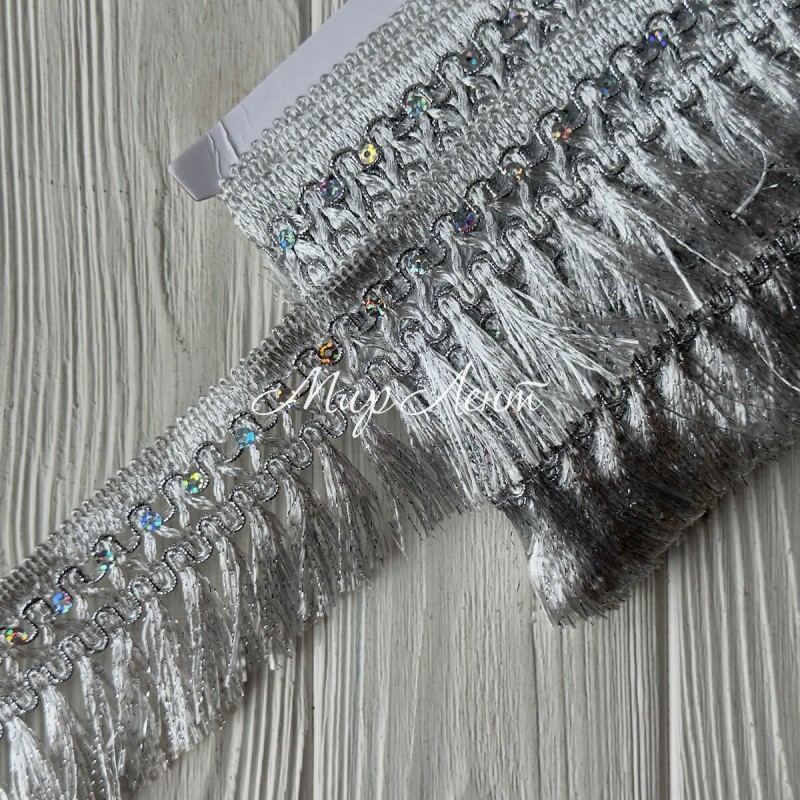 Тесьма с бахромой (D30082), 6,5 см, серебро, рулон 13 м