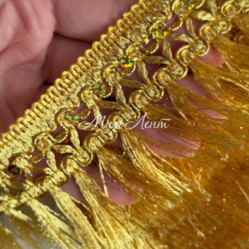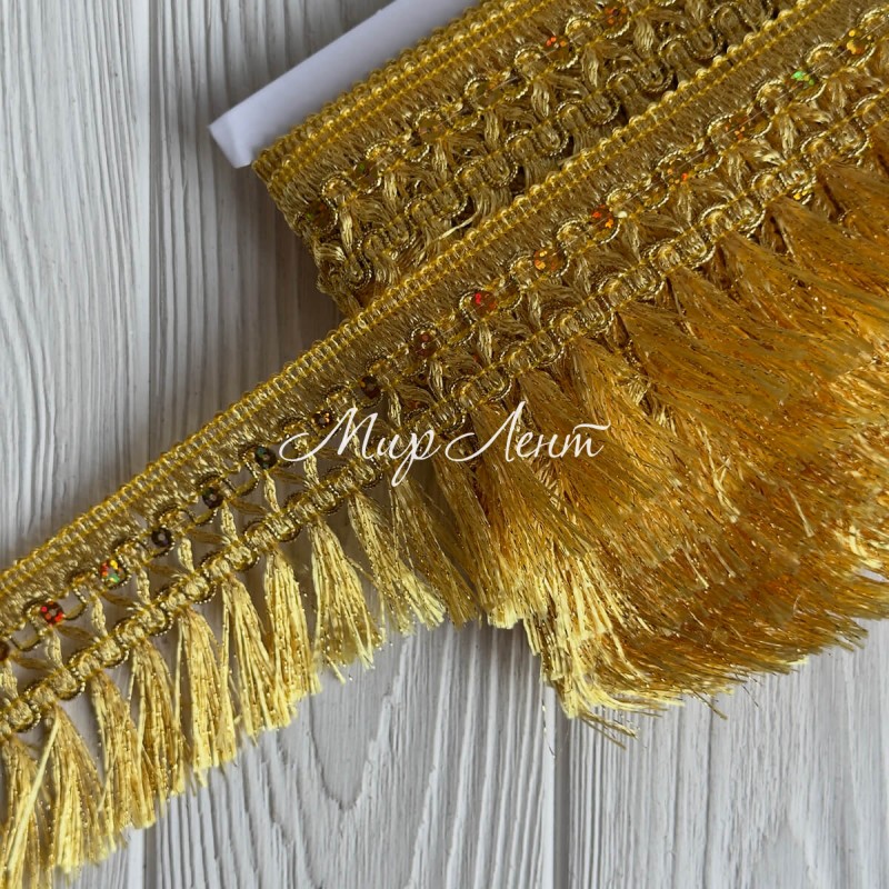 Тесьма с бахромой (D30082), 6,5 см, золото, рулон 13 м
