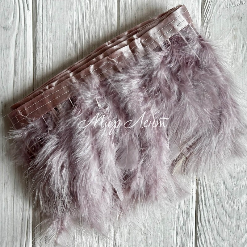Тесьма с лебединых перьев, 15 см, сиренево-пудровая, рулон 2 м