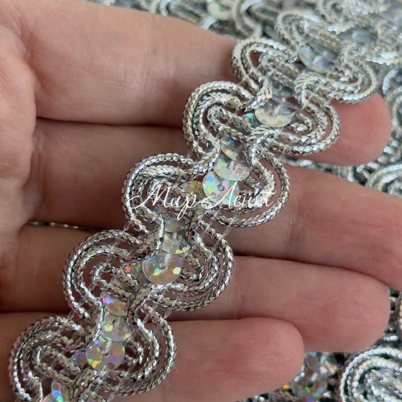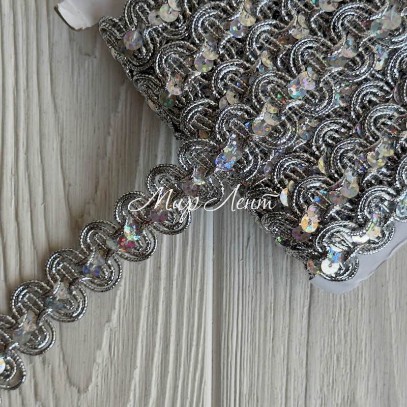 Тесьма с паетками (№19), 2,2 см, серебро, рулон 13 м