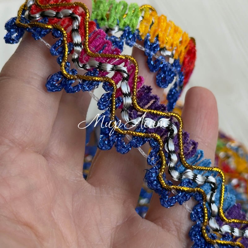 Тесьма с паетками (D30276), 2,5 см, синий с цветным, рулон 13 м
