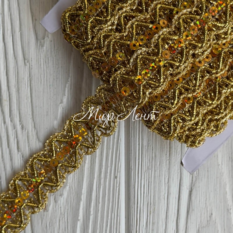 Тесьма с паетками (D30297), 2,3 см, золото, рулон 13 м