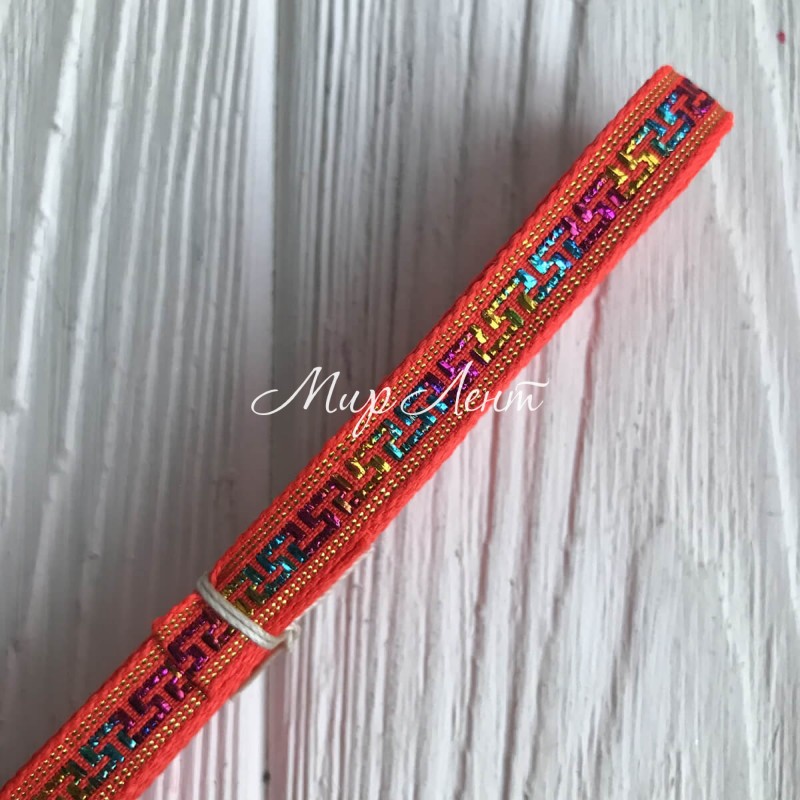 Тесьма вышиванка греческий узор, 0,8 см, оранжевый, рулон 9 м