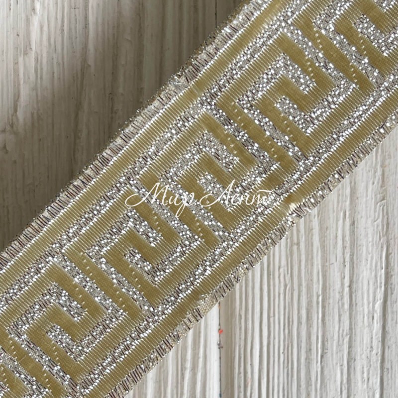 Тесьма вышиванка (греческий узор), 3,3 см, светлое золото с люрексом, рулон 9 м