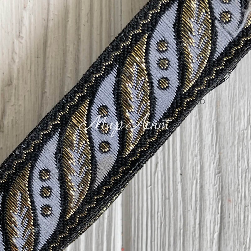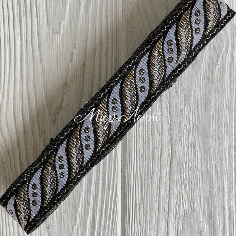 Тесьма вышиванка (листик), 2,8 см, черная с серым, рулон 9 м