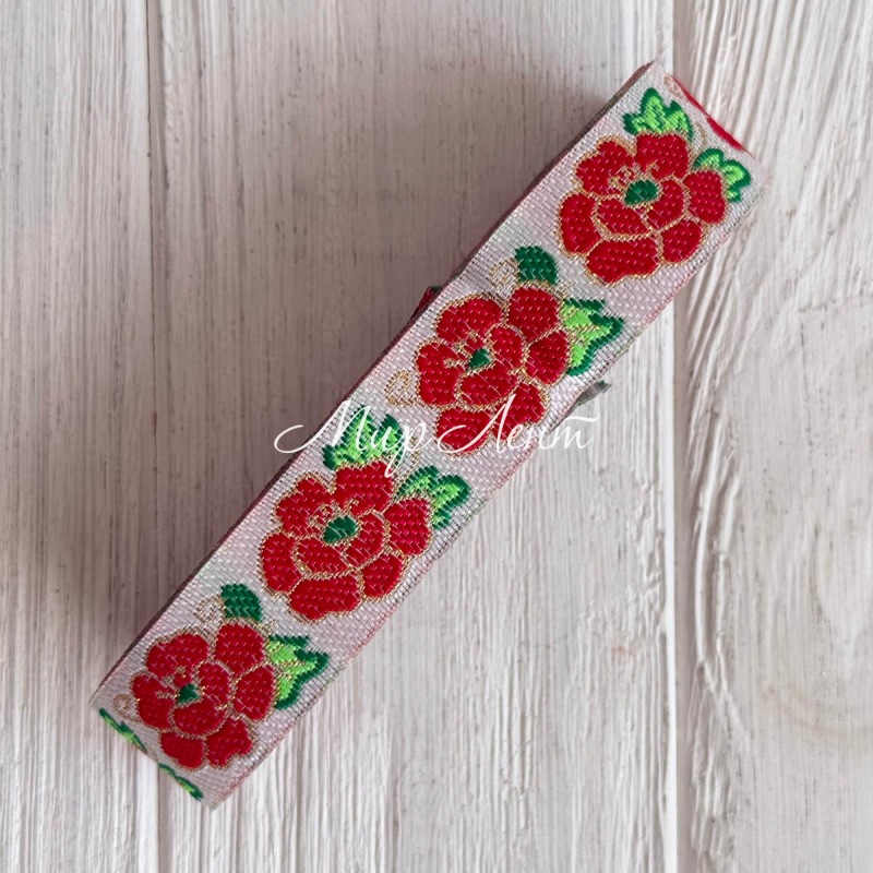 Тесьма вышиванка (мальвы), 2,5 см, белая с красным, рулон 7 м