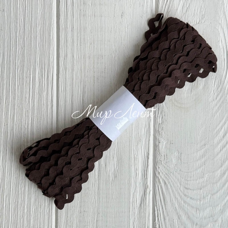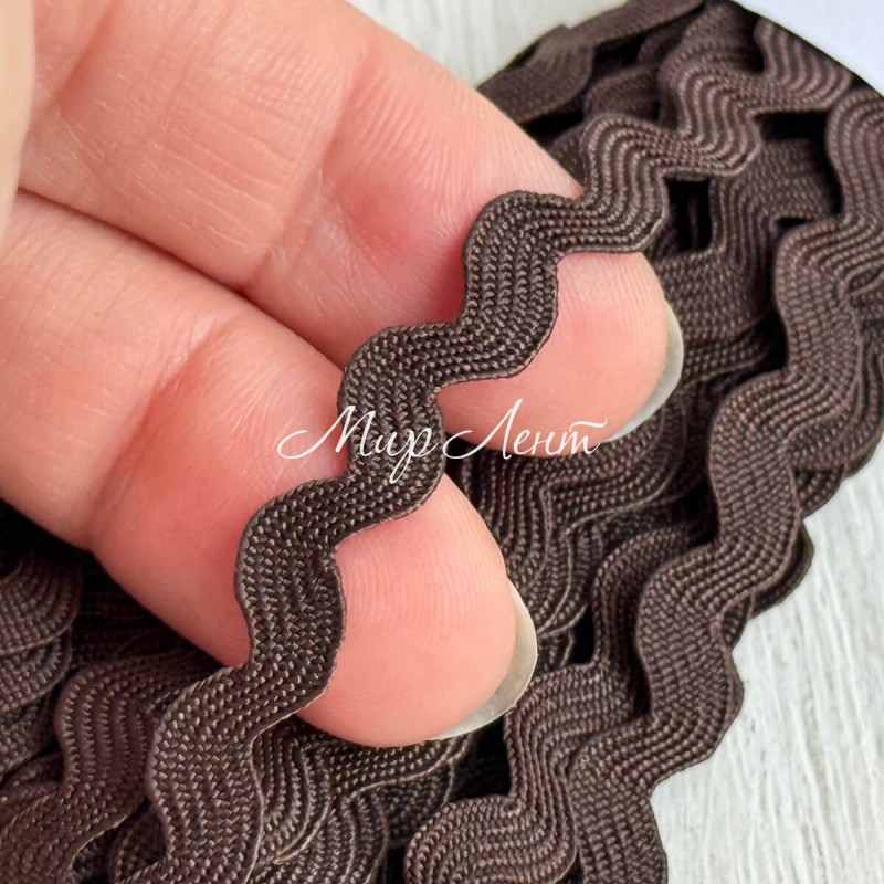 Тесьма зиг-заг, 5 мм, коричневый, моток 13 м