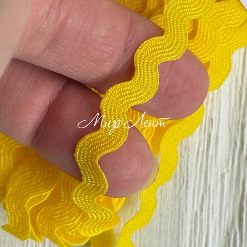 Тесьма зиг-заг, 5 мм, желтый, моток 13 м