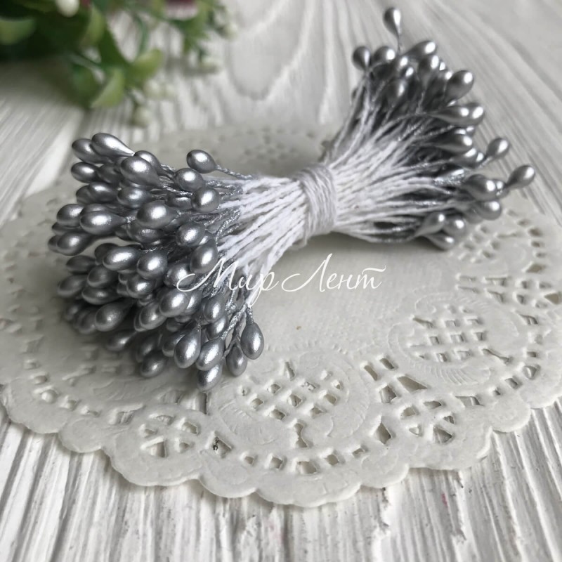 Тычинки маленькие, 2 мм, серебряные, пучок 1800 шт.