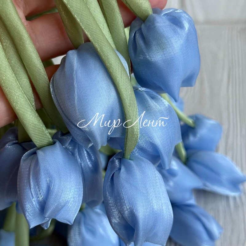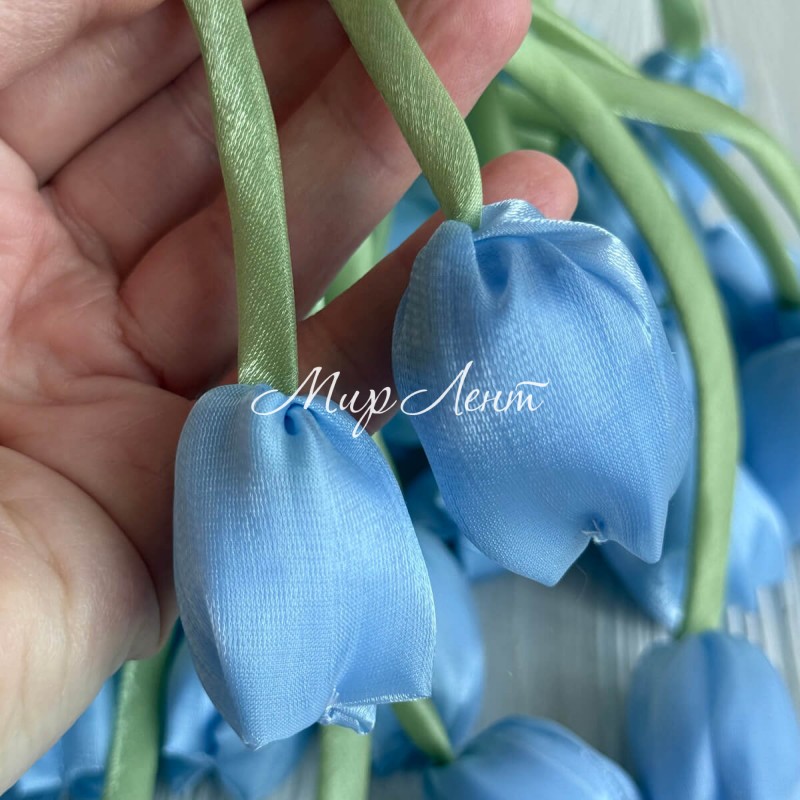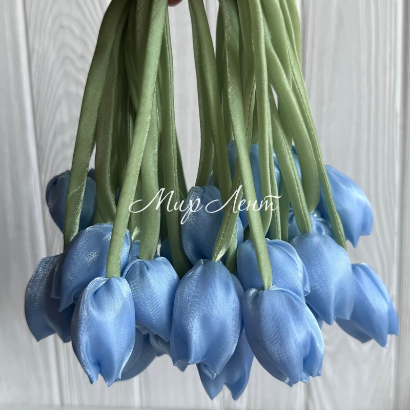 Тюльпаны из органзы, 42 см, голубые, упаковка 20 шт.