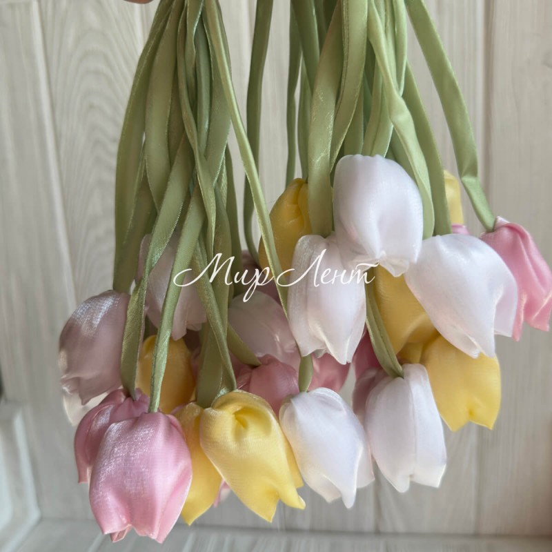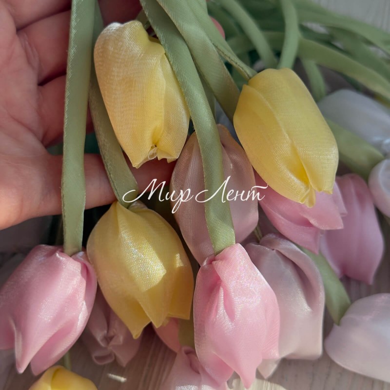 Тюльпаны из органзы, 42 см, пастельный микс, упаковка 20 шт.