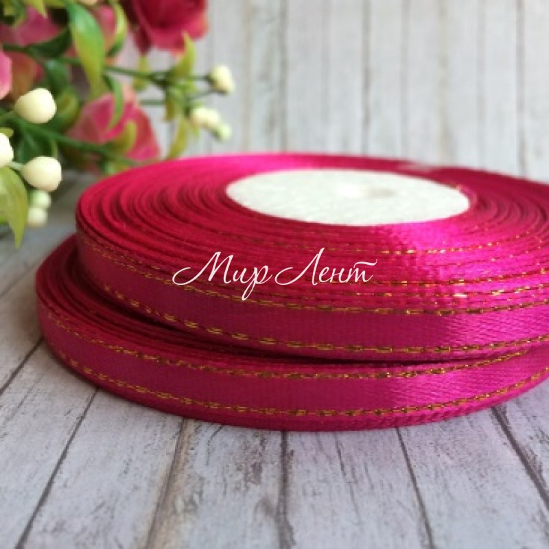 Атлас 0,6 см люрекс золото, темно-малиновий, рулон 33 м