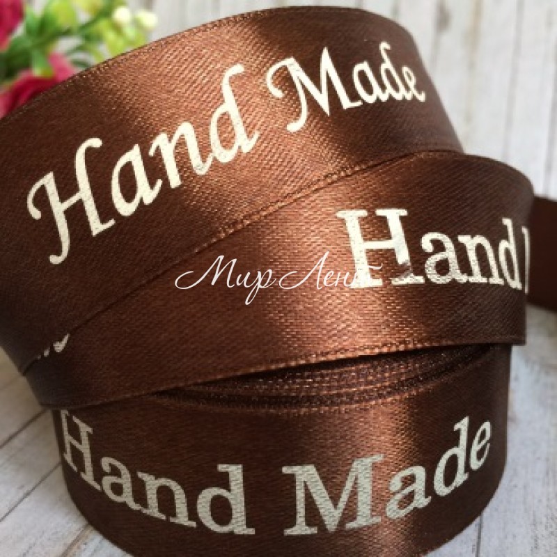 Атлас 2,5 см, Hand made, шоколадний, рулон 18 м