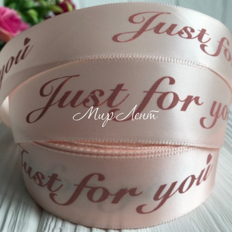 Атлас 2,5 см, Just for you, рожево-персиковий, рулон 18 м