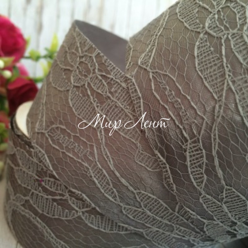 Атлас 4 см, мереживо, сірий, рулон 17,5 м