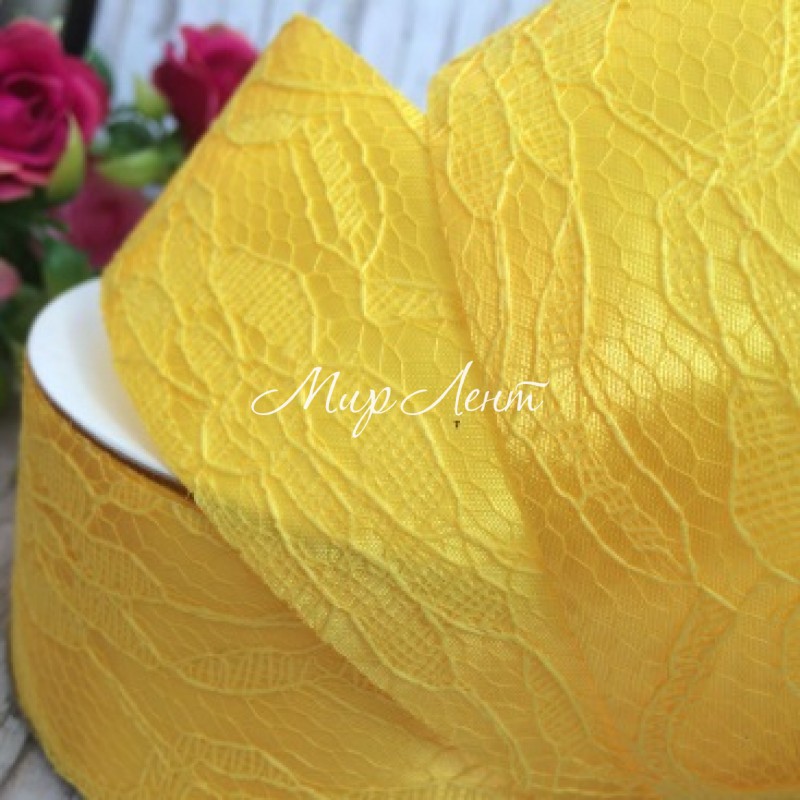Атлас 4 см, мереживо, темно-жовтий, рулон 17,5 м