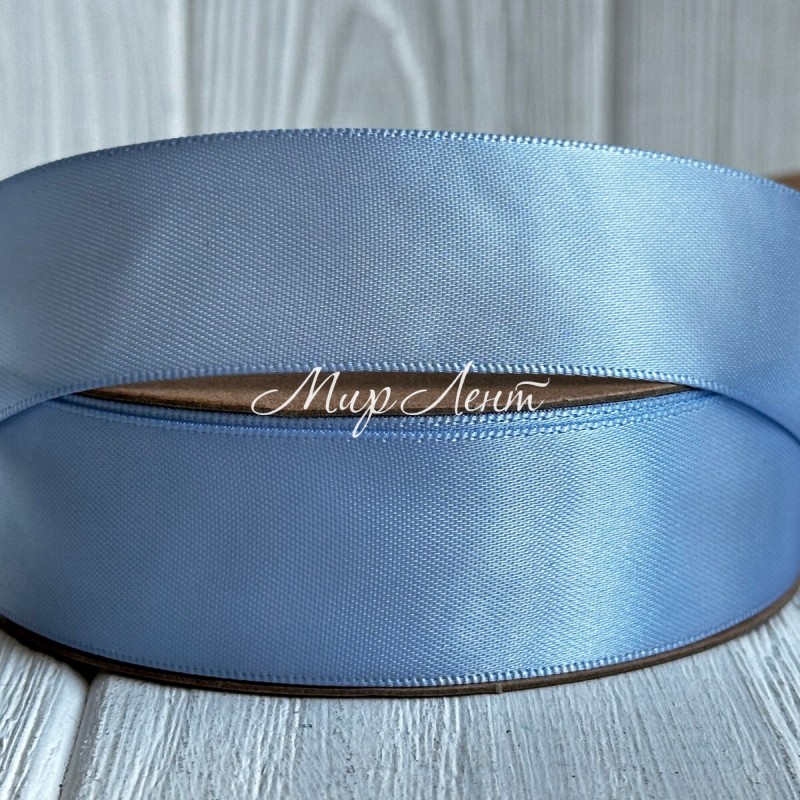 Атлас двосторонній (преміум), 2,5 см, блакитний, рулон 23 м