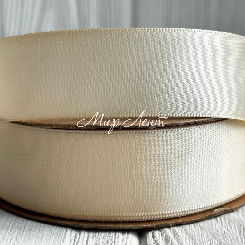 Атлас двосторонній (преміум), 2,5 см, молочно-бежевий, рулон 23 м