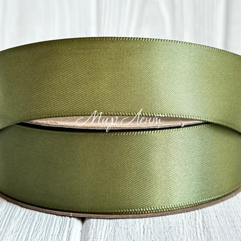 Атлас двосторонній (преміум), 2,5 см, оливковий, рулон 23 м