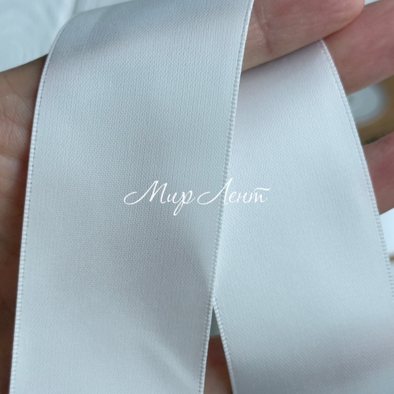 Атлас двосторонній (преміум), 3,8 см, айворі, рулон 23 м