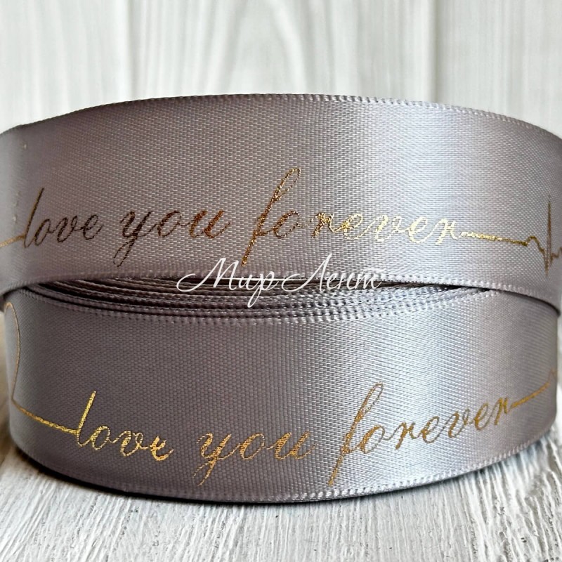 Атлас Love you forever, 2,5 см, сірий, рулон 18 м