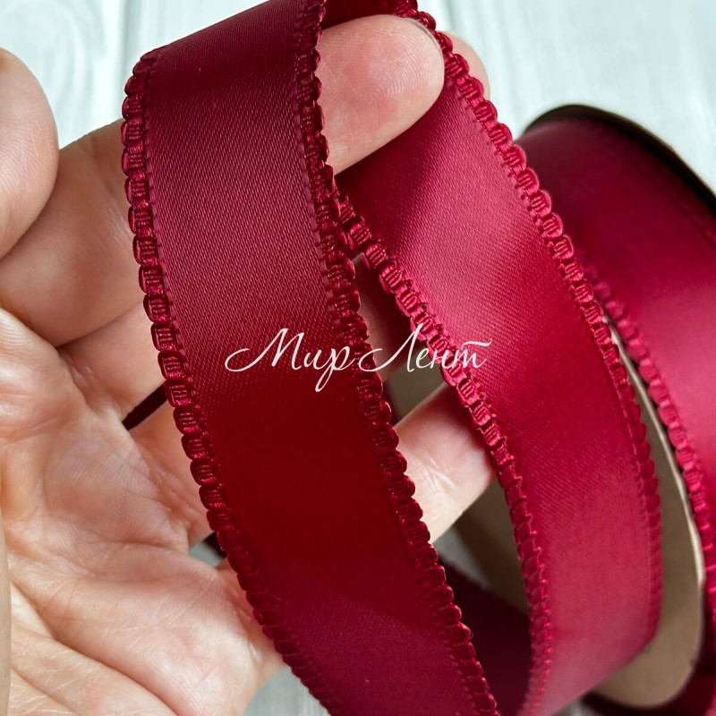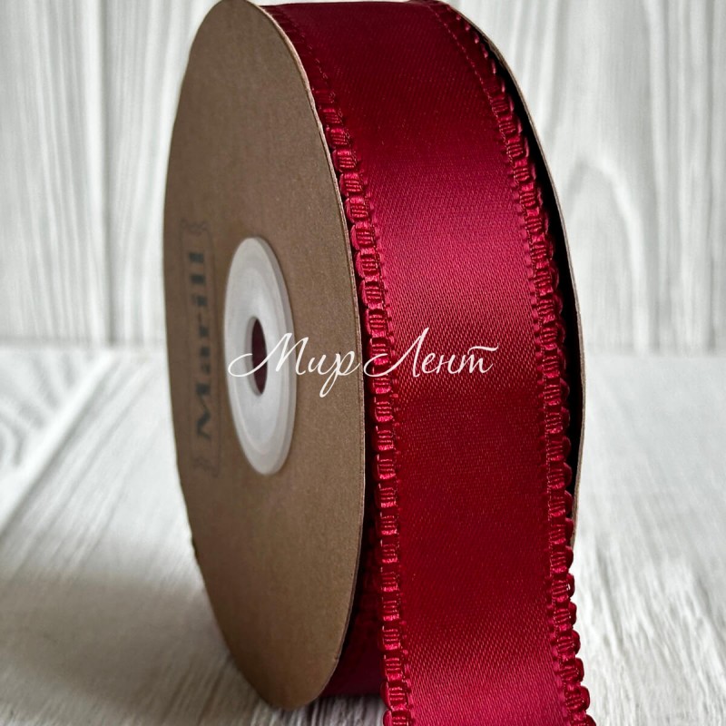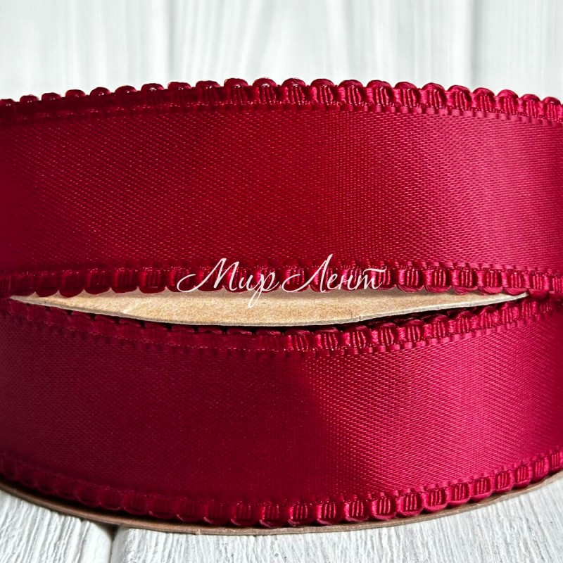 Атлас двосторонній з кантом, 2,5 см, бургунді, рулон 18,5 м