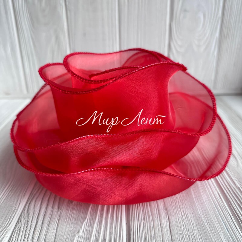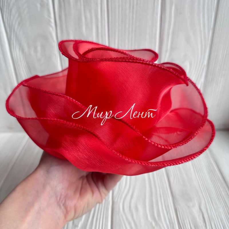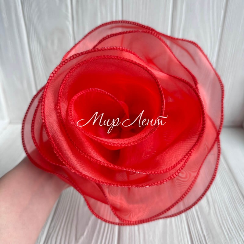 Брошка-квітка з органзи велика (волосінь), 22 см, червона, шт.