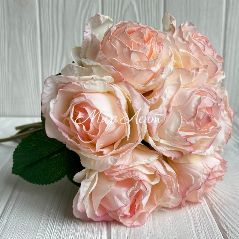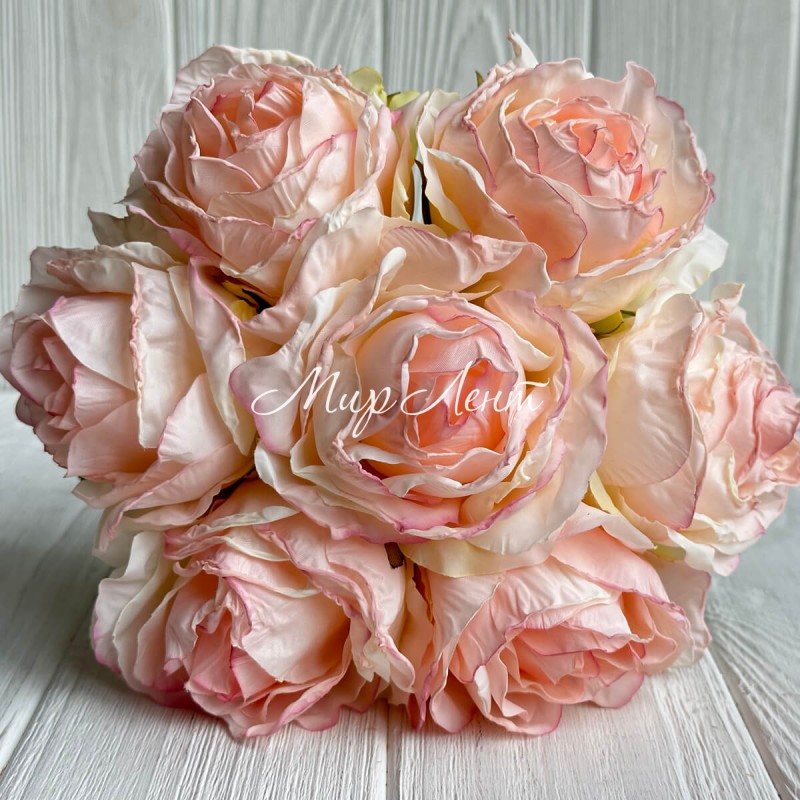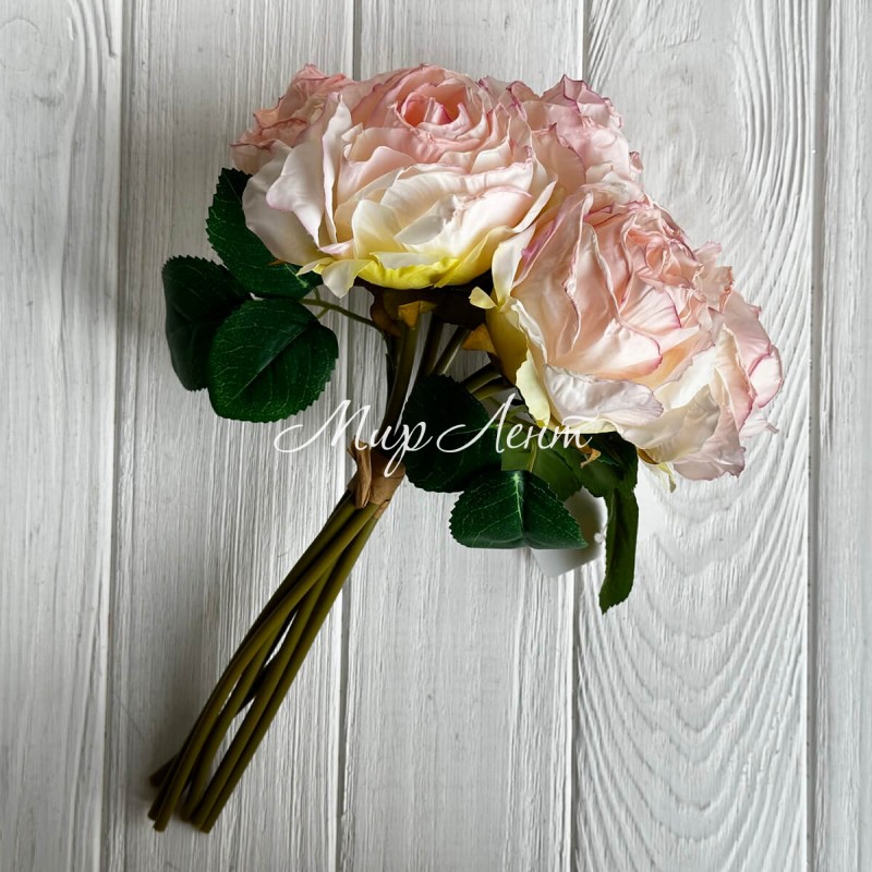 Букет бурбонської троянди, 6х27 см, молочно-рожевий, букет з 7 шт.