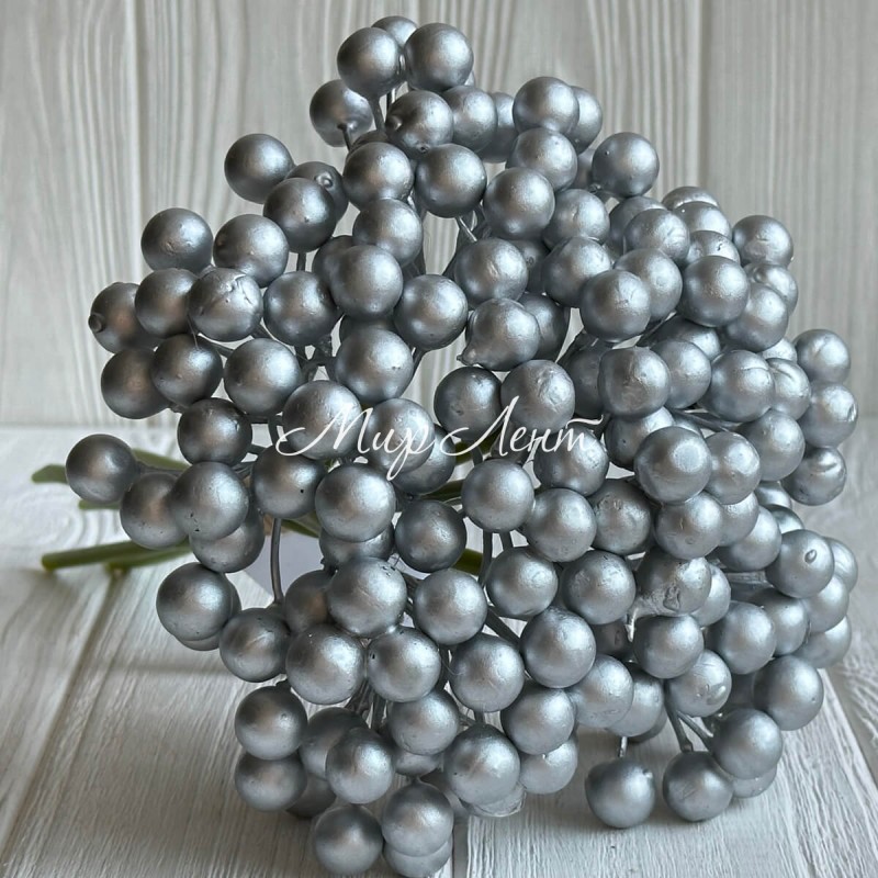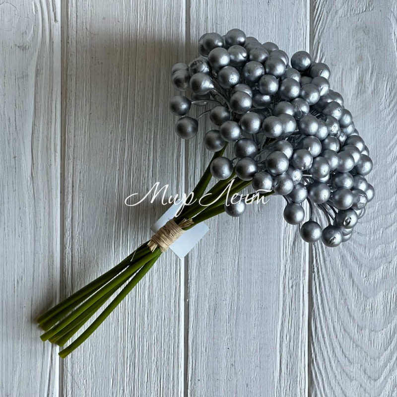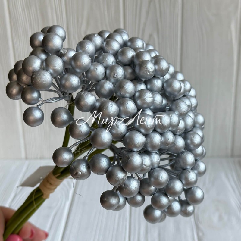 Букет калини глянцевої, 25 см, срібло, букет з 6 шт.