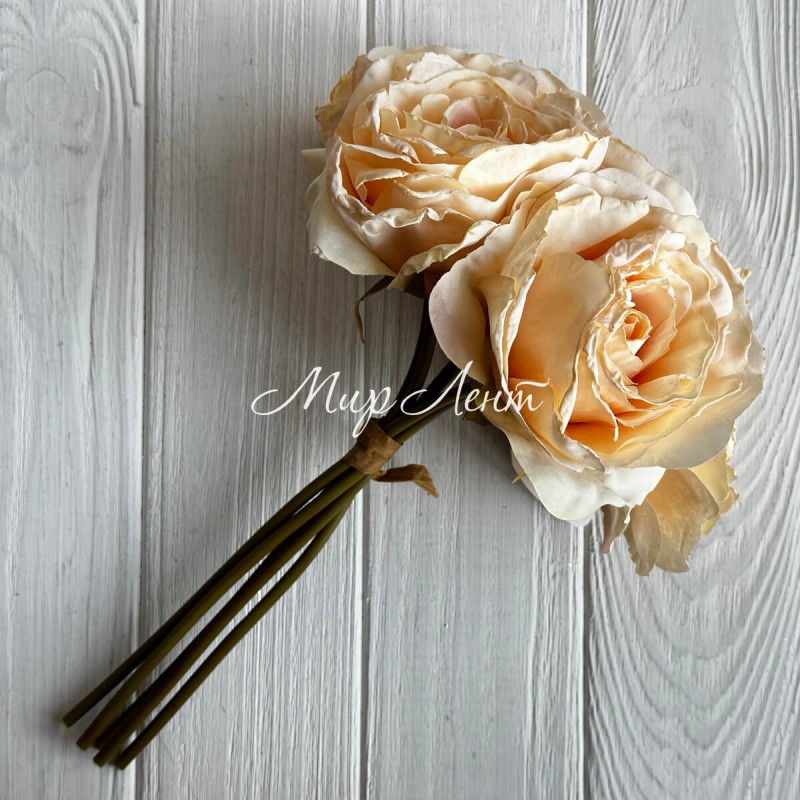 Букет китайської троянди, 11х30 см, персиковий, букет 5 шт.
