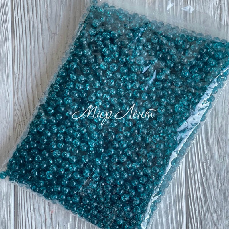 Бусина "бите скло", 10 мм, бірюзова, велика упаковка 500 г