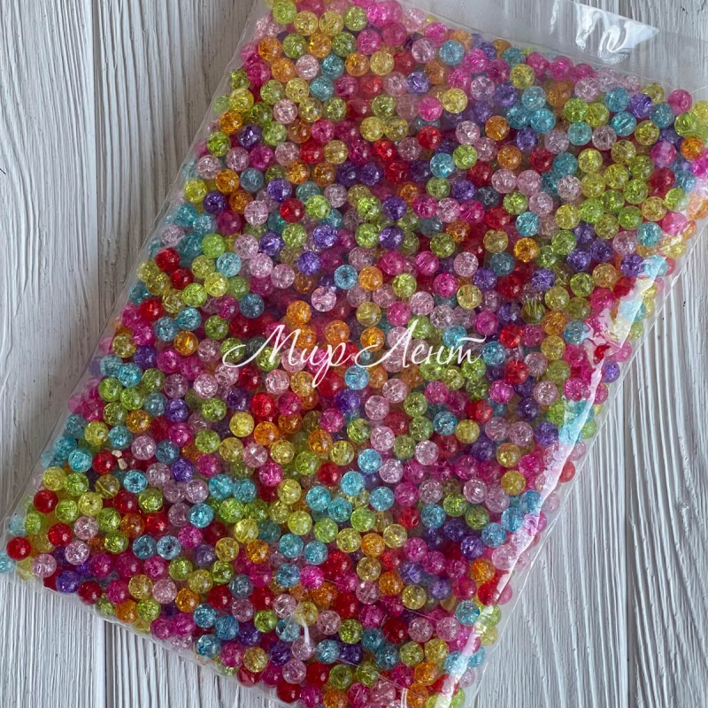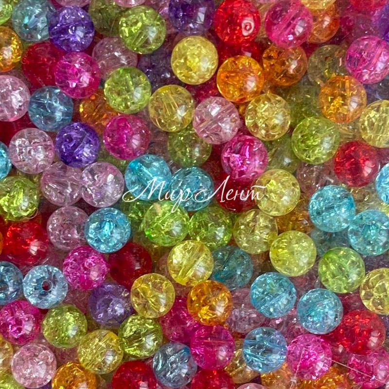 Бусина "бите скло", 10 мм, кольоровий мікс, велика упаковка 500 г