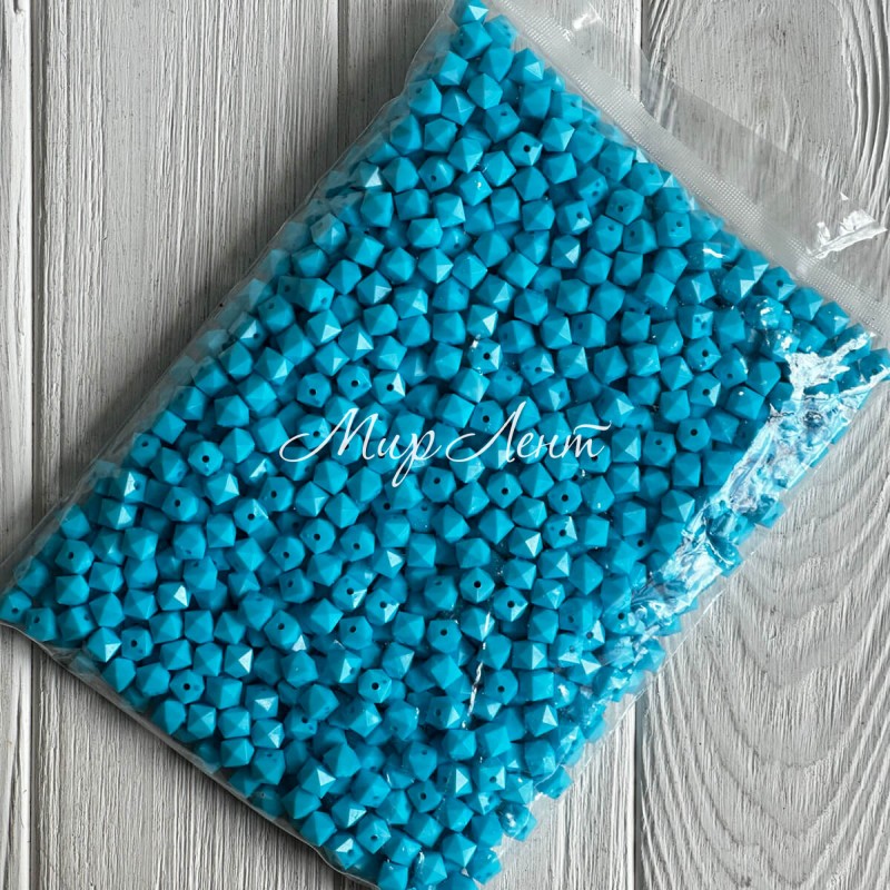 Намистина гранована кубовидна, 10 мм, бірюзова, упаковка 500 г