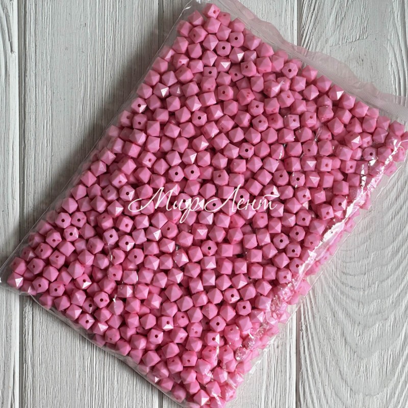 Намистина гранована кубовидна, 10 мм, рожева, упаковка 500 г