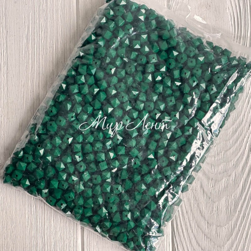 Намистина гранована кубовидна, 10 мм, темно-зелена, упаковка 500 г